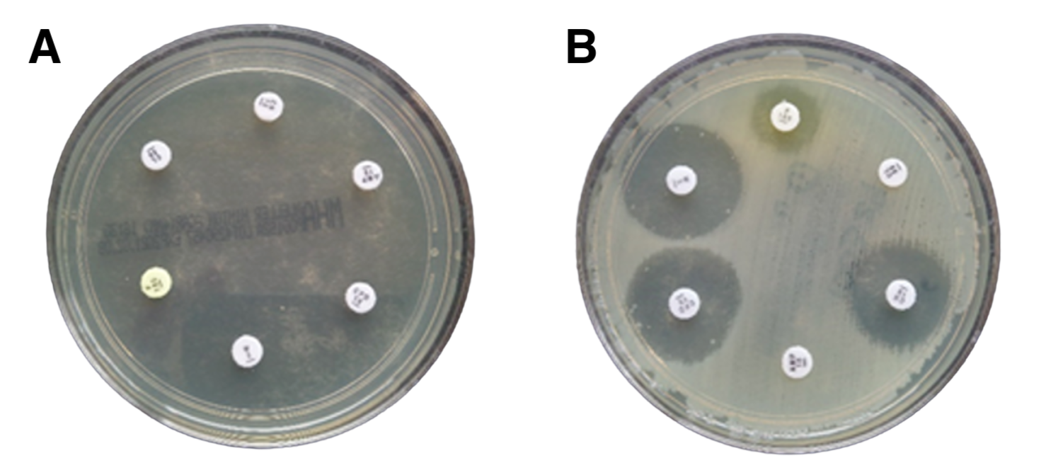 In the image above, we have two agar plates, Plate A and Plate B. Plate A tests the antibiotic susceptibility of the bacteria Escherichia coli, responsible for causing a urinary tract infection (UTI) in Patient 1. Plate B tests a different strain of E. coli responsible for Patient 2’s chronic UTI.